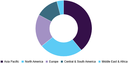 Global dietary fibers market, by region, 2015