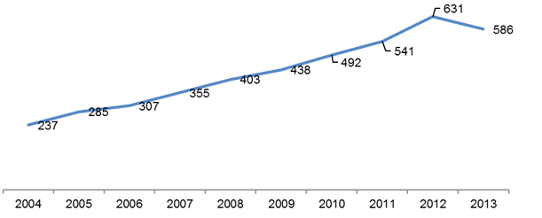 Number of newly registered sperm donors in the UK, 2004 - 2013