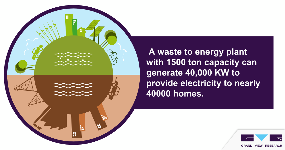 The global waste to energy market is expected at nearly USD 44 billion by 2024, according to Grand View Research, Inc.; a premier market research & consulting firm. Government tax benefits and fossil-fuel depletion influence market growth. Expansion across the recycling industry in developed nations and breakthroughs in WtE techniques would prove beneficial for industry players.