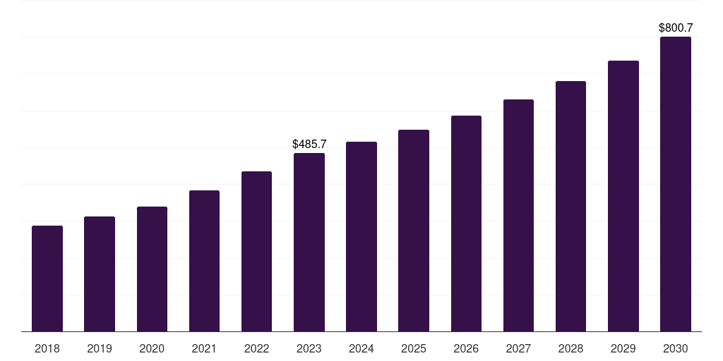 | Market revenue in 2030 | USD 800.7 million |