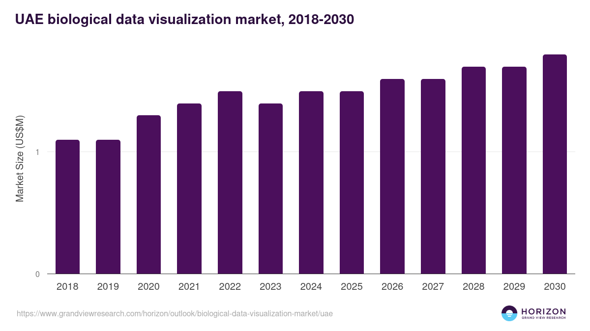 - The UAE biological data visualization market generated a revenue of USD 1.5 million in 2024 and is expected to reach USD 1.8 million by 2030.