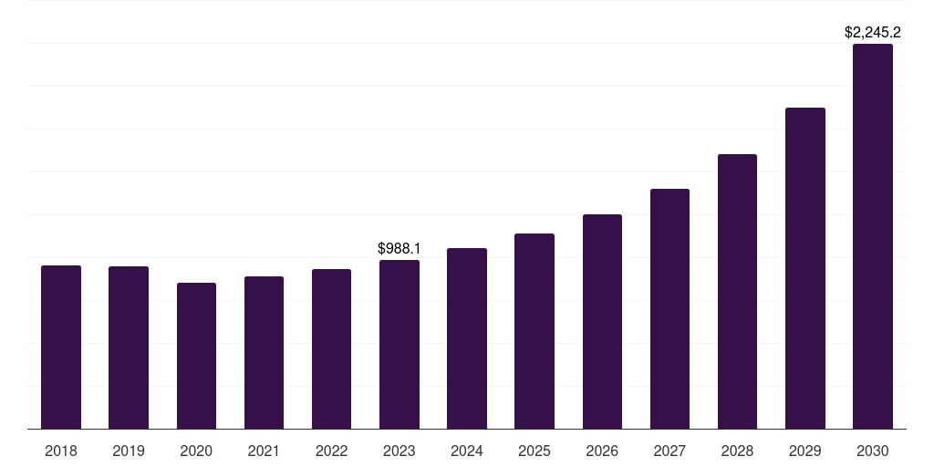 - The Japan digital map market generated a revenue of USD 988.1 million in 2023 and is expected to reach USD 2,245.2 million by 2030.