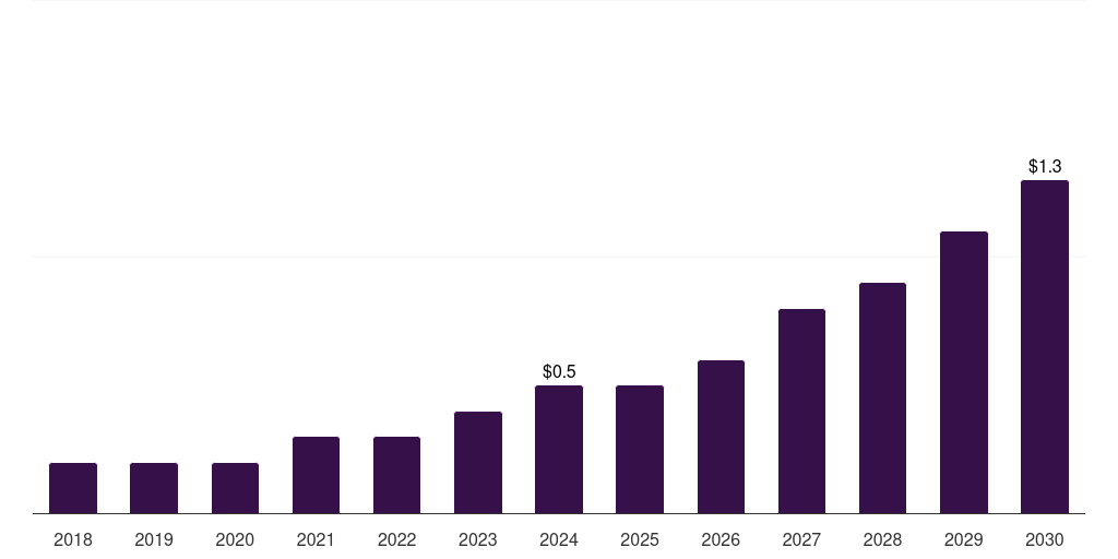 - The Germany graphene quantum dots market generated a revenue of USD 0.5 million in 2024 and is expected to reach USD 1.3 million by 2030.