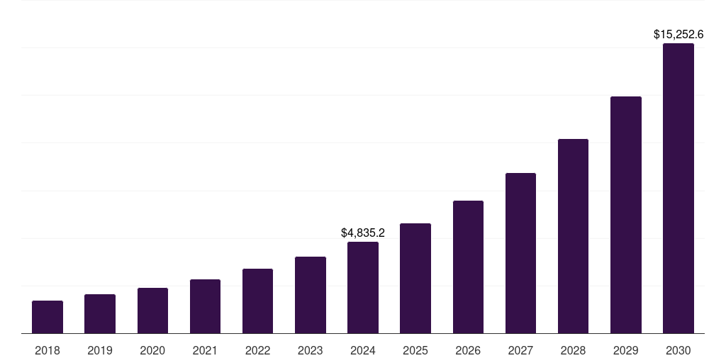 - The China messaging application api market generated a revenue of USD 4,835.2 million in 2024 and is expected to reach USD 15,252.6 million by 2030.