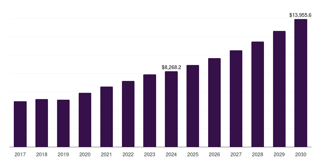 - The South Korea microprocessor market generated a revenue of USD 8,268.2 million in 2024 and is expected to reach USD 13,955.6 million by 2030.