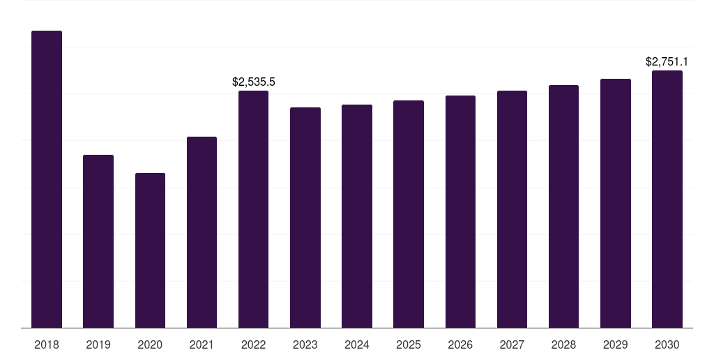 | Market revenue in 2022 | USD 2,535.5 million |