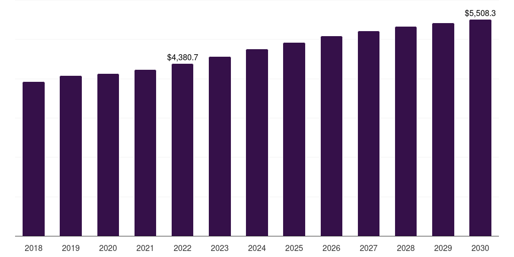 | Market revenue in 2030 | USD 5,508.3 million |
