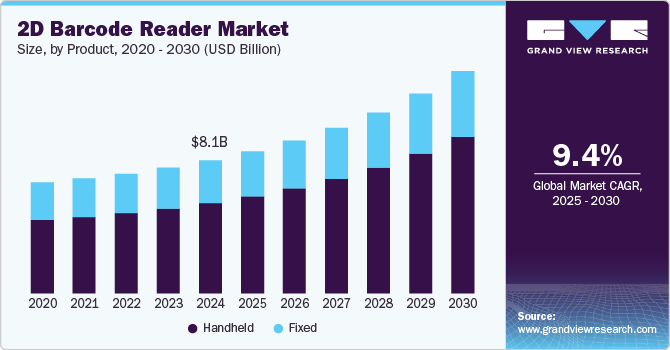 b. The global 2D barcode reader market size was estimated at USD 8.14 billion in 2024 and is expected to reach USD 8.68 billion in 2025.