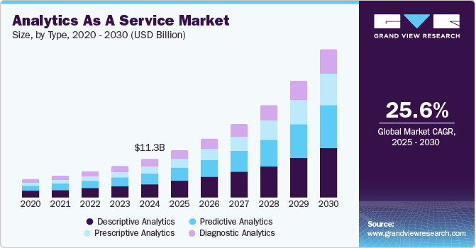 b. The global Analytics as a Service (AaaS) market is expected to grow at a compound annual growth rate of 25.9% from 2020 to 2027 to reach USD 29.68 billion by 2027.