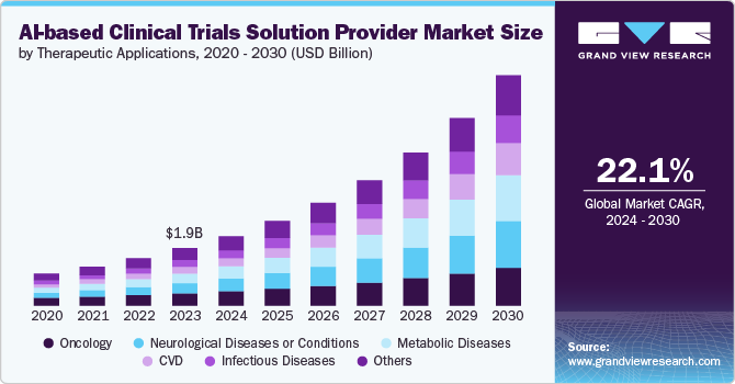 b. The global AI-based clinical trials solution provider market is expected to grow at a compound annual growth rate of 22.1% from 2024 to 2030 to reach USD 7.8 billion by 2030.