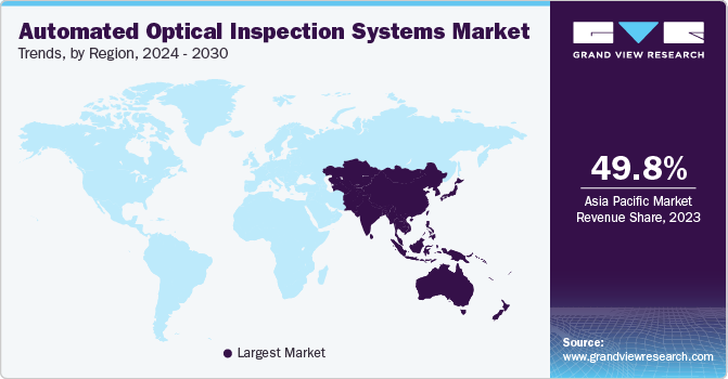Asia Pacific automated optical inspection systems market dominated the global industry and accounted for a revenue of 49.8% in 2023. This market is primarily driven by increasing demand for consumer electronics and the presence of large numbers of PCB manufacturers. Due to increasing disposable income, the rapid growth of consumer electronics and automobiles in countries such as India and China has led to the adoption of AOI systems. Furthermore, the region is one of the largest producers of automobiles, leading to the need for high-quality electronic components. In addition, various companies and governments are collaborating to meet the growing demand. For instance, in July 2023, Omron Automation launched a new proof-of-concept (PoC) Lab in India to showcase the latest advancements in AOI. Moreover, the region is a hub for semiconductors and advanced printed circuit boards.