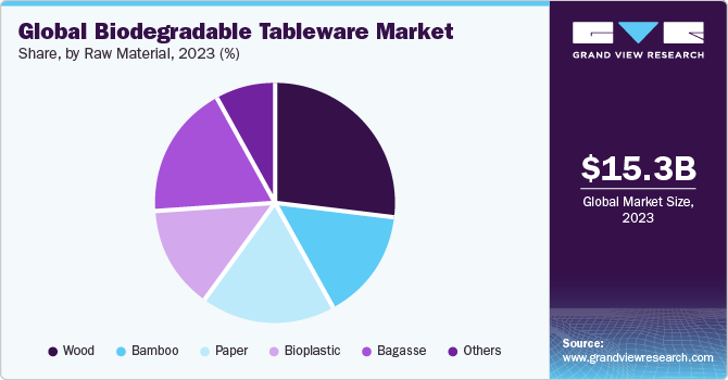 Wood segment dominated the market with a revenue share of 26.5% in 2023. Wood offers a natural and attractive appearance, enhancing the dining experience for consumers. Growing demand for sturdy and durable tableware is driving the demand for wood products, especially cutleries, plates, stir sticks, and others. Due to its abundance of availability, affordability, and high compostability, wood is the preferred choice among tableware manufacturers. The biggest advantage of using wooden cutlery is that it is 100% compostable. Birch, maple, cherry, and oak are common type of hardwood used for making biodegradable tableware products.