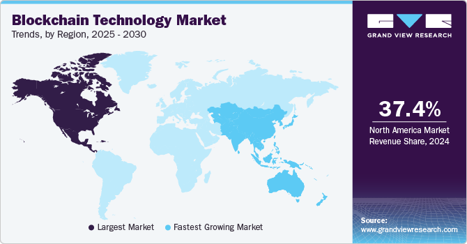 North America dominated the blockchain technology market in 2022 and accounted for over 37.0% share of the global revenue. The region boasts a robust ecosystem of tech startups, established corporations, and leading research institutions, creating a fertile ground for blockchain development. Silicon Valley, in particular, has been a hotspot for blockchain startups and venture capital investments. Moreover, North America is home to a diverse range of industries, from finance and healthcare to supply chain management and energy, all of which recognize the transformative potential of blockchain technology.