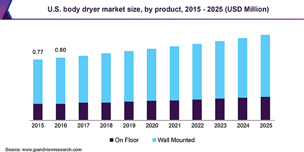 Body Dryer Market (2025 - 2030) Size, Share & Trends Analysis Report By Product (Wall-mounted, On-floor), By Application (Residential, Commercial), By Region, And Segment Forecasts