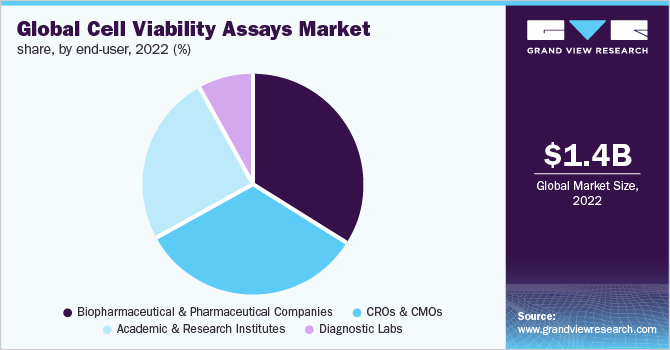 The biopharmaceutical and pharmaceutical companies segment captured the largest revenue share of over 30.0% in 2022 owing to the widespread use of viability assay in pharmaceuticals to evaluate the influence of developed agents on cells. Researchers use numerous types of assays to monitor the effect of developed therapeutics that often target cancer tumors. In addition, toxicity levels of the compounds or agents can be evaluated using a cell viability assay. Such broad applications of cell viability assay in the biopharmaceutical and pharmaceutical industry drive the segment.
