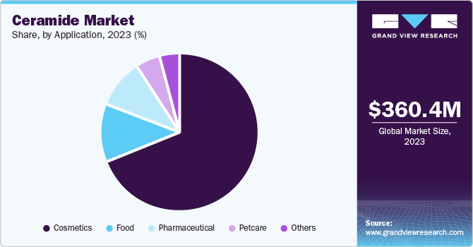 The global ceramide market size was valued at USD 360.4 million in 2023 and is projected to grow at a CAGR of 6.8% from 2024 to 2030. The market growth is attributed to the wide range of applications in various industries such as food, pet care, cosmetics, pharmaceutical, and others. In addition, the changing lifestyle of the young generation and increasing habits such as smoking and drinking around the world have increased skin care, aging problems, and the prevalence of diseases such as eczema and psoriasis, which increases the demand for ceramics, which plays a significant role in the treatment.