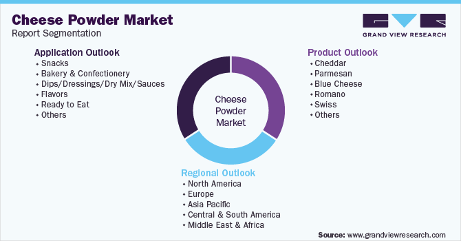 This report forecasts revenue growth at the global, regional, and country levels and provides an analysis of the latest industry trends and opportunities in each of the sub-segments from 2018 to 2030. For this study, Grand View Research has segmented the global cheese powder market report based on product, application, and region: