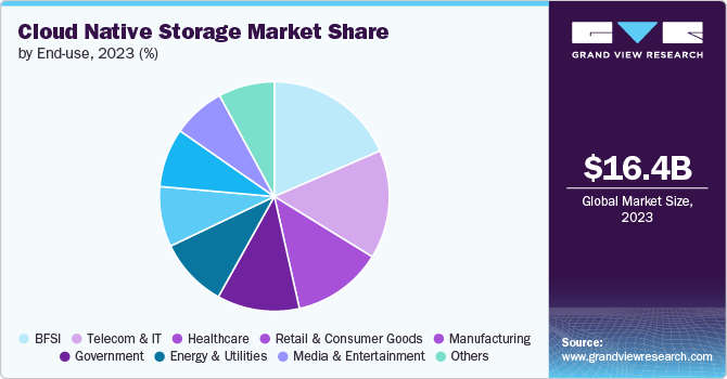Based on end use, the BFSI segment led the market with the largest revenue share of 18.5% in 2023, due to need for robust security and compliance features in the sector. Financial institutions are subject to stringent regulatory requirements and must ensure the confidentiality, integrity, and availability of sensitive customer data. Cloud native storage solutions often come with advanced security features, including encryption, access controls, and compliance certifications that meet industry standards. These features help BFSI organizations mitigate risks associated with data breaches and ensure compliance with regulations such as GDPR, HIPAA, and PCI-DSS. By leveraging cloud native storage, financial institutions can enhance their security posture and reduce the burden of compliance management. For instance, in June 2024, Nutanix, a U.S.-based cloud computing company revealed insights from its yearly international Financial Services Enterprise Cloud Index (ECI) study and analysis, estimating the advancement of hybrid cloud integration within the financial services and insurance sectors. The adoption rate of hybrid multicloud setups has stayed steady annually within the financial sector, those surveyed anticipate a tripling in these deployments over the coming three years, placing it as the dominant IT infrastructure model for the industry.