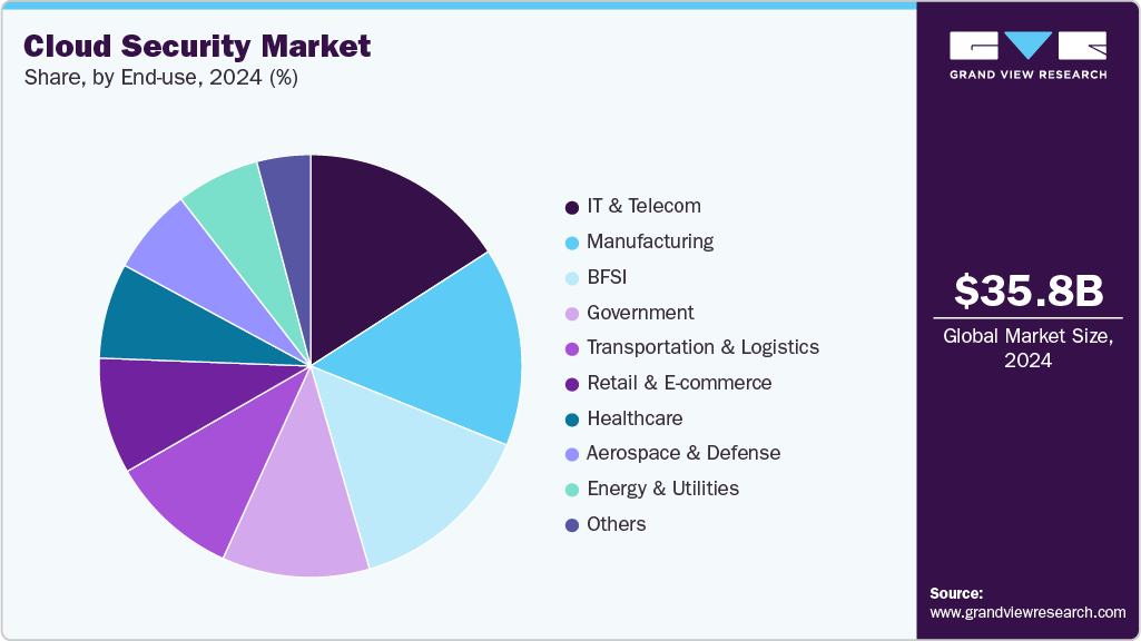 b. IT & telecom end-use segment held the largest market share of nearly 16.0% in 2024. The need to ensure data privacy, service availability, and compliance is pushing this sector to invest heavily in robust cloud security solutions that provide comprehensive protection against threats such as distributed denial-of-service (DDoS) attacks, data breaches, and insider threats.