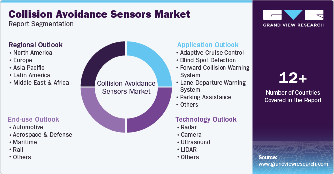 This report forecasts revenue growth at global, regional, and country levels and provides an analysis of the latest industry trends in each of the sub-segments from 2018 to 2030. For this study, Grand View Research has segmented the collision avoidance sensors market report based on technology, application, end-use, and region: