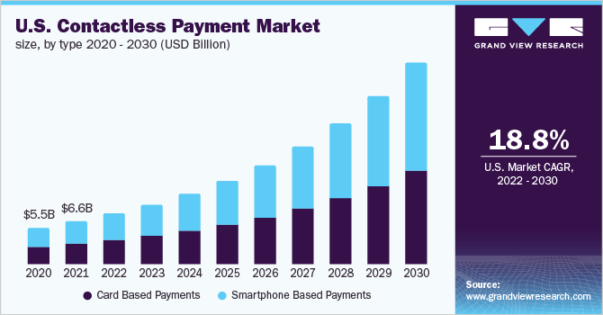 b. The global contactless payment market is expected to grow at a compound annual growth rate of 19.1% from 2022 to 2030 and is expected to reach USD 164.15 billion by 2030.