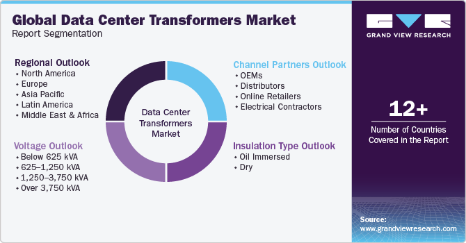 This report forecasts revenue growth at global, regional, and country levels and provides an analysis of the latest industry trends in each of the sub-segments from 2018 to 2030. For this study, Grand View Research has segmented the data center transformer market report based on insulation type, voltage, channel partners, and region.