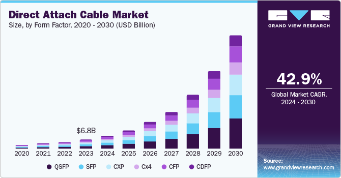 Direct Attach Cable Market (2024 - 2030) Size, Share & Trends Analysis Report By Type (Direct Attach Copper Cable, Active Optical Cable), By Form Factor (SFP, QSFP, CXP, Cx4, CFP, CDFP), By End-use, By Region, And Segment Forecasts