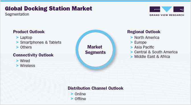This report forecasts growth at global, regional, and country levels and provides an analysis of the latest industry trends in each of the sub-segment from 2017 to 2030. For the purpose of this study, Grand View Research has segmented the global docking station market on the basis of product, connectivity distribution channel, and region: