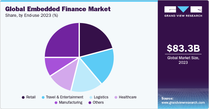The travel & entertainment segment is anticipated to witness the fastest growth over the forecast period. Travel & entertainment companies are involved in launching several embedded finance services, including buy now pay later services. For instance, in January 2023, Kayak, a part of Booking Holdings Inc., partnered with Affirm, a financial company, to launch a buy now pay later service for all eligible travelers on the firm's website. As a result of this launch, travelers were enabled with flexibility in payment through a BNPL option while booking trips on KAYAK.com.
