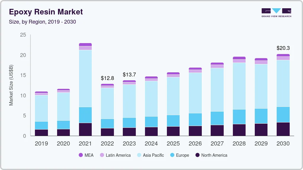 b. The global epoxy resin market is expected to grow at a compound annual growth rate of 6.3% from 2023 to 2030 to reach USD 16.87 billion by 2030.