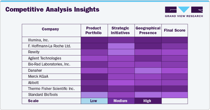 Illumina, Inc.; F. Hoffmann-La Roche Ltd.; Revvity; Agilent Technologies, Inc.; Bio-Rad Laboratories, Inc.; Danaher; Merck KGaA; Abbott; Thermo Fisher Scientific; Standard BioTools