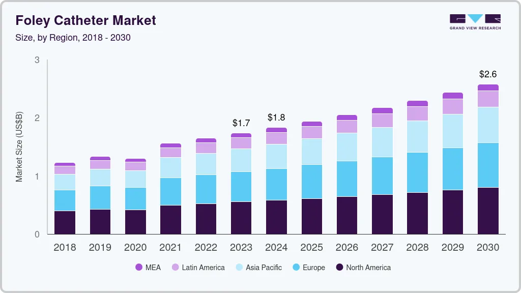 b. The global foley catheters market is expected to grow at a compound annual growth rate of 5.86% from 2025 to 2030 to reach USD 2.58 billion by 2030.