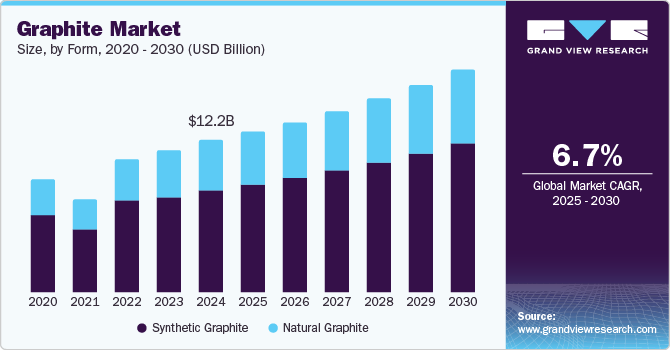 b. By form, synthetic graphite dominated the market, accounting for a revenue share of over 67.0% in 2025.