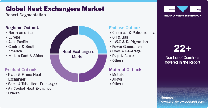 This report forecasts revenue growth at global, regional, and country levels and provides an analysis of the latest industry trends in each of the sub-segments from 2021 to 2033. For this study, Grand View Research has segmented the global heat exchanger market report based on product, material, end use, and region:
