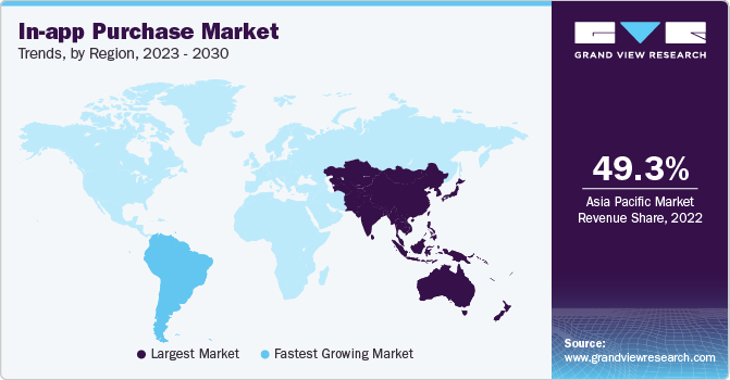 Asia Pacific accounted for significant market share 49.3% in 2022, with the U.S. at the forefront. The growth of internet usage and the continued growth of retail, consumer goods and e-commerce in countries, such as Japan, India, and China are expected to drive the growth of the in-app purchase market in Asia Pacific. In addition, advanced in-app purchase solutions can be available at an affordable price, which drives their demand among consumers in various industries such as hospitality, tourism, retail, and consumer goods. Further, the acceleration of digitalization across Asia Pacific is encouraging brands and retailers to adopt advanced loyalty programs, supporting the industry trend.