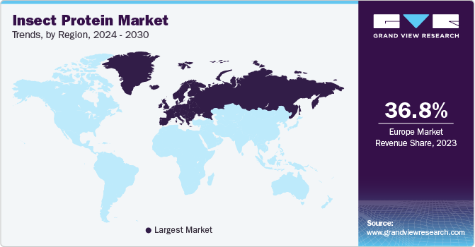 b. Europe held a significant share of 36.8% of the overall market revenue in 2023 due to increasing regulatory support and rising consumer awareness of the sustainability benefits of insect protein.