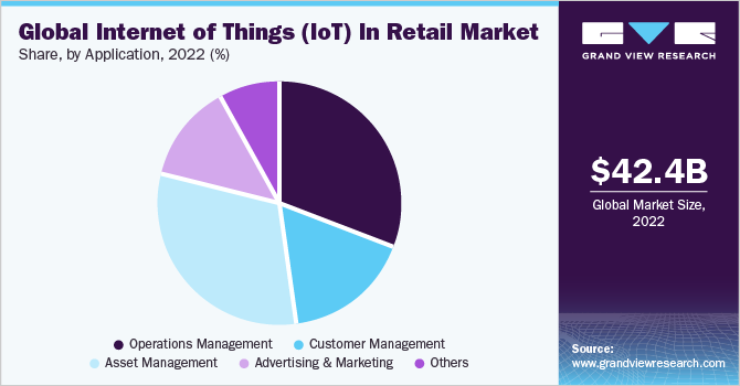 The operations management segment recorded the highest market share of over 31% in 2022. The operations management segment is further divided into inventory management, supply chain automation, workforce management, and security & safety. Operations management contributes to the growth of the IoT in the retail market by providing tools and strategies to improve the effectiveness and efficiency of various retail operations. Moreover, retailers can advance supply chain management, inventory management, and security & safety, among others, by leveraging IoT data and technology, which leads to reduced costs, increased sales, and improved customer satisfaction. This, in turn, is expected to propel the segment growth over the forecast period.