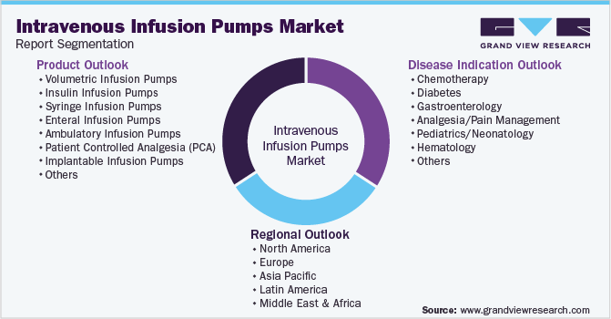 This report forecasts revenue growth at global, regional, and country levels and provides an analysis of the latest industry trends in each of the sub-segments from 2018 to 2030. For this study, Grand View Research has segmented the global intravenous infusion pumps market report based on product, disease indication, and region: