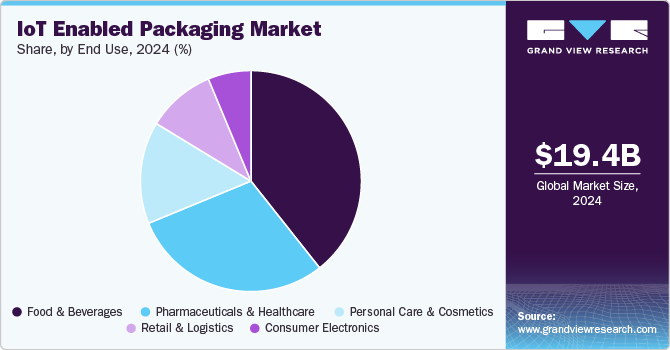 The food & beverage segment recorded the largest market share of over 39.0% in 2024. The growing demand for traceability, enhanced safety standards, and the need for real-time monitoring are major drivers in the food and beverages sector. Consumers are increasingly concerned about food quality, freshness, and sustainability, pushing brands to adopt technologies such as IoT to offer transparency and improve product handling during transportation. Moreover, regulatory requirements for food safety and the increasing preference for personalized, fresh food products are encouraging companies to incorporate smart packaging solutions.