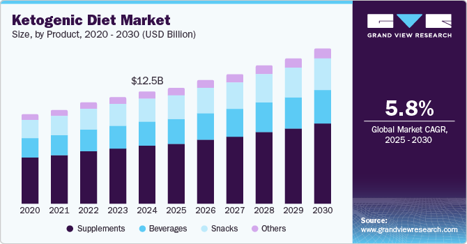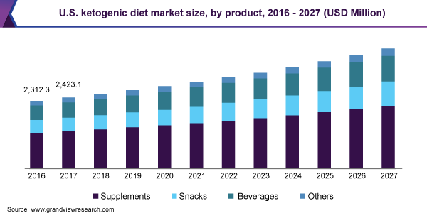 b. The global ketogenic diet market is expected to grow at a compound annual growth rate of 5.5% from 2020 to 2027 to reach USD 14.75 billion by 2027.