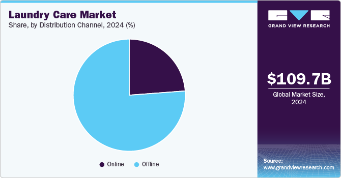 Laundry detergent accounted for a market share of around 82% in 2024. Laundry detergent continues to dominate the laundry care market, fueled by consistent consumer demand for effective and convenient cleaning solutions that cater to a wide range of fabrics and stains. The evolution of laundry detergents, with innovations such as concentrated formulas, pods, and eco-friendly variants, has made it easier for consumers to use and achieve superior cleaning results with minimal effort. The availability of a wide variety of detergent types, from budget-friendly to premium options, ensures that they meet the diverse needs of different consumer segments, favoring the market growth.