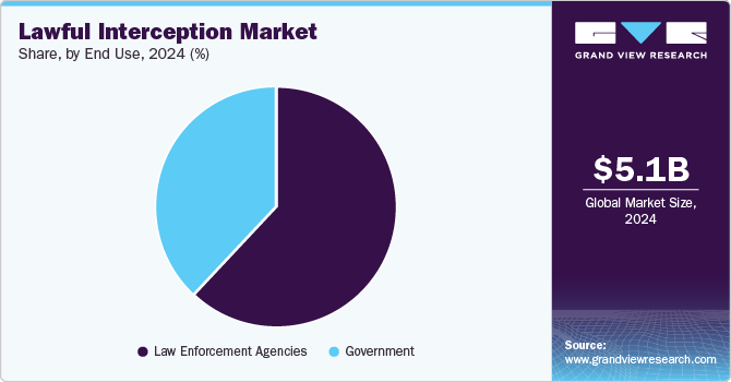 The mobile data segment accounted for the largest revenue share in 2024. The mobile data segment continues to dominate the lawful interception market due to the exponential growth in mobile internet usage worldwide. As mobile devices become ubiquitous, the volume of data transmitted over mobile networks has surged, making it a critical area for surveillance. Law enforcement agencies and governments are increasingly focusing on intercepting mobile data for various purposes, such as cybercrime investigations, terrorism prevention, and anti-drug operations. The widespread adoption of 5G and 4G LTE technologies has further fueled this trend, offering faster data speeds and more robust mobile networks that allow for more sophisticated interception methods.