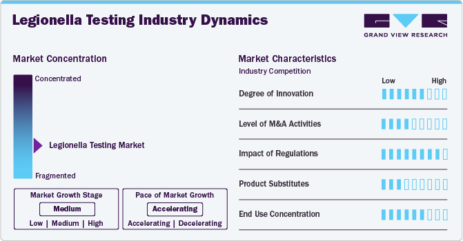 Market growth stage is high, and pace of the market growth is accelerating . The legionella testing industry is characterized by a medium degree of innovation owing to rapid technological advancements and increasing demand for novel diagnostic technologies. Innovation is mainly driven by the increasing investment by biotechnology companies and organizations operating in diagnostic solutions.