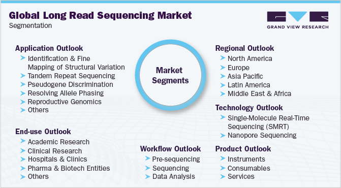 This report forecasts revenue growth and provides an analysis of the latest trends in each of the sub-segments from 2018 to 2030. For the purpose of this report, Grand View Research has segmented the global long read sequencing market on the basis of product, technology, workflow, application, end-use and region: