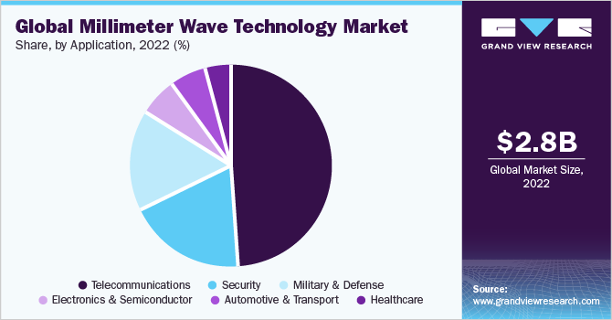 The military & defense segment is anticipated to register the highest growth rate over the forecast period. Millimeter wave scanners are in high demand and are being adopted by international airport authorities worldwide. This increasing adoption of the MMW scanners, on account of the global terrorism issue, is expected to propel the use of millimeter wave technology in military & defense applications. In addition, the increasing adoption of MMW technology in various applications, such as inter-satellite links, point-to-point communications, and others, is anticipated to propel the segment's growth over the forecast period.