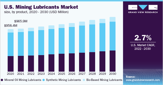 b. The global mining lubricants market is expected to grow at a compound annual growth rate of 3.8% from 2022 to 2030 to reach USD 8.96 billion by 2030.