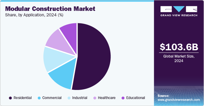 The open-sided segment in the modular construction market is estimated to grow at the fastest CAGR of 9.3% over the forecast period, driven by increasing demand for flexible and customizable building solutions. Open-sided modules provide enhanced design adaptability, allowing for larger open spaces without internal load-bearing walls. This makes them particularly suitable for applications such as hotels, commercial buildings, and healthcare facilities, where spacious interiors and seamless connectivity between modules are essential. The ability to integrate multiple open-sided modules enables architects and developers to achieve more complex designs while maintaining the benefits of off-site construction.
