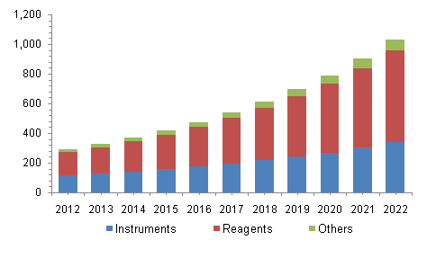 Growth is driven by the increasing global cancer burden, growing adoption of precision medicine, and continued innovation in diagnostic technologies such as PCR, NGS, and liquid biopsy platforms.