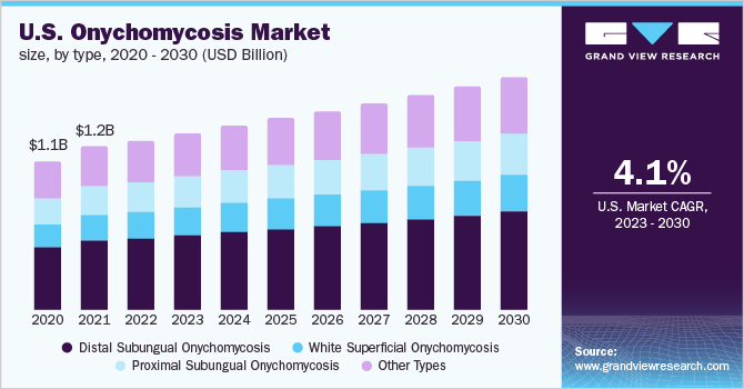 - The onychomycosis industry in the U.S. is expected to grow significantly over the forecast period.