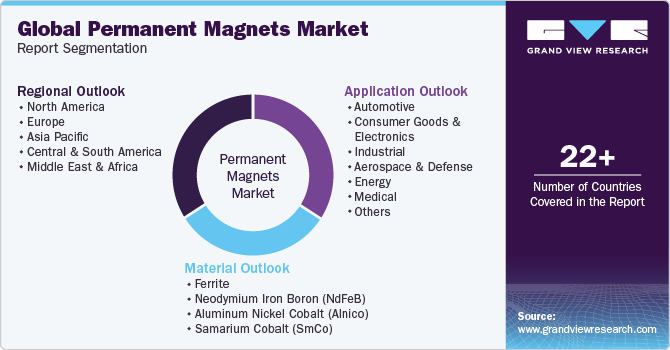 This report forecasts revenue and volume growth at global; regional; and country levels and provides an analysis of the latest industry trends in each of the sub-segments from 2021 to 2033. For this study, Grand View Research has segmented the global permanent magnets market report based on the application, material, and region.